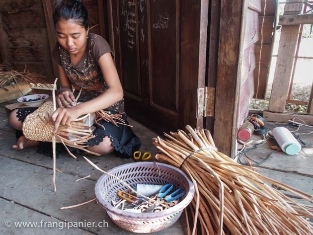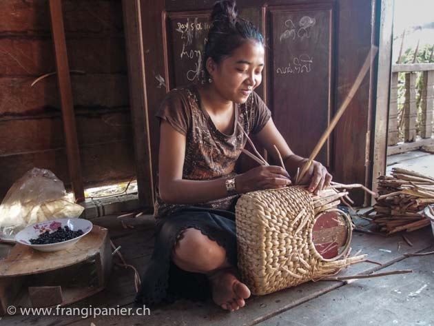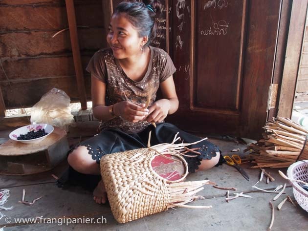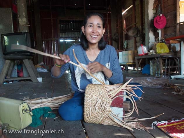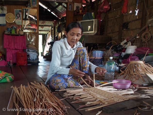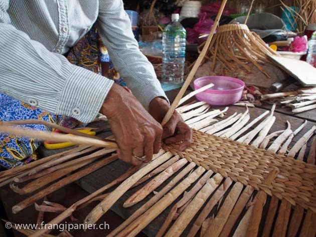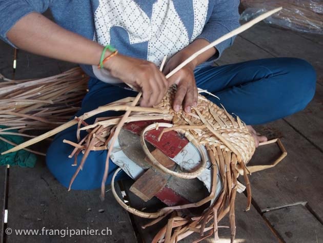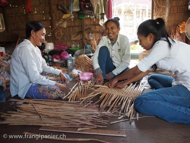J’ai eu la grande chance de pouvoir visiter des dames du groupe avec lequel j’ai choisi de travailler pour Frangipanier, elles m’ont même appris à tresser la jacinthe d’eau, un travail magnifique!