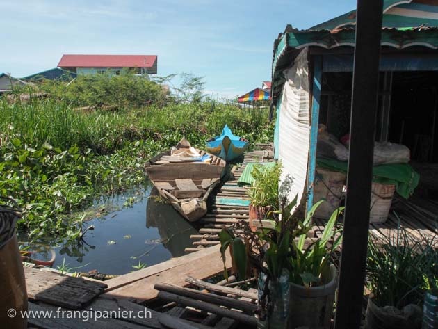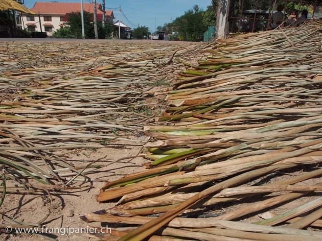En se baladant le long du lac Tonle Sap au Cambodge, on voit très souvent sur les bords des routes ou sur les toits des maison de la jacinthe d’eau en train de sécher.