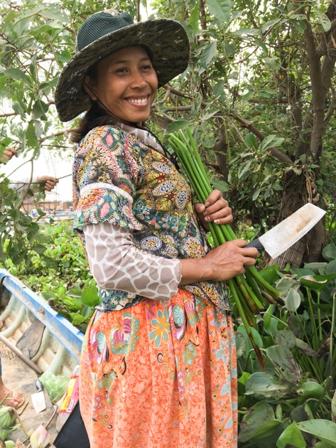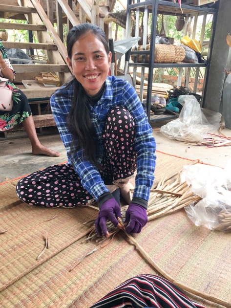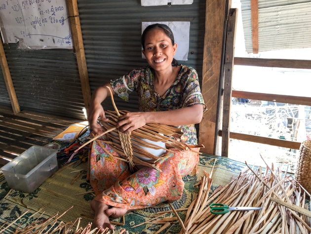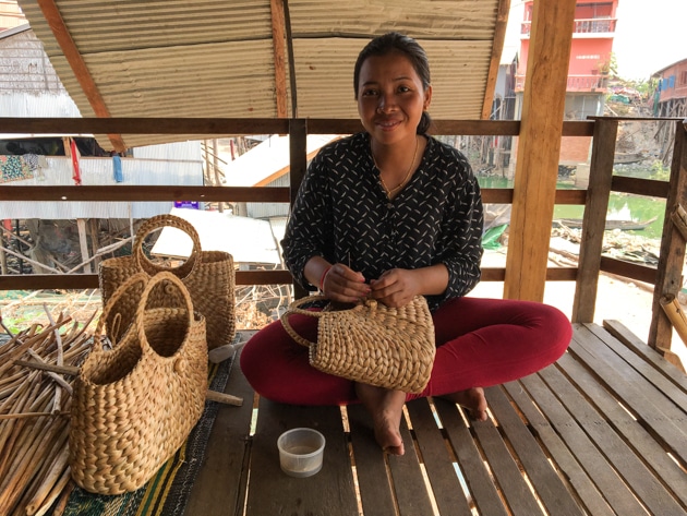 Soun, une jeune femme cambodgienne de 35 ans, s’occupe d’un groupe d’artisanes de la jacinthe d’eau. Les artisanes du groupe, principalement de jeunes veuves ou mamans seules, vivent toutes ensemble sous un même toit procuré par Soun. Leurs assurances maladie sont payées et elles ont accès à des formations, par exemple des cours de khmer (langue principale parlée au Cambodge) car certaines ne sont pas allées à l’école. Une dame du même village vit très pauvrement, sans revenu, sous des bâches en plastique, devant un étang sur lequel la jacinthe d’eau pousse abondamment. Soun a rencontré cette dame et lui a proposé d’aller récolter la jacinthe d’eau, de la sécher et de la vendre à Soun pour le travail des artisanes. Cette dame a accepté et avec les premiers sous reçus de ses récoltes de jacinthe d’eau elle a acheté des graines et a commencé de cultiver un petit jardin aux abords de l’étang. Les légumes de son nouveau jardin lui permettent maintenant un revenu supplémentaire, car elle vend au marché local ceux qu’elle ne consomme pas. N’est-ce pas là toute la magie du partage et du commerce équitable ?